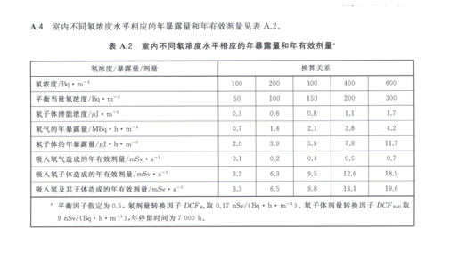 當(dāng)室內(nèi)氡濃度達到或超過}l.l.l的氡濃度控制值時,應(yīng)根據(jù)實際情況進行氡及其子體濃度對相關(guān)所致年均有效劑量的估算(參見附錄A),并對劑量估算結(jié)果應(yīng)用以下的劑量控制值: