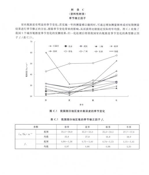 采用1年的累積測量、連續(xù)測量或用季度測量均值經(jīng)季節(jié)修正得到的年平均氡濃度。