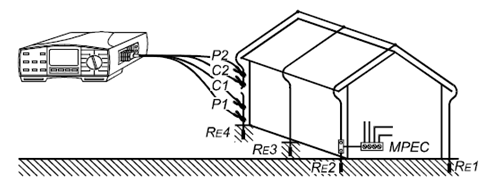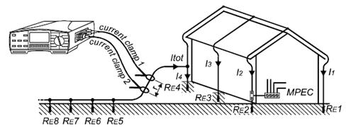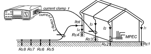 測量結果=(RE1-RE4接地系統總的接地電阻)+(RE5-REn輔助接地系統接地電阻)