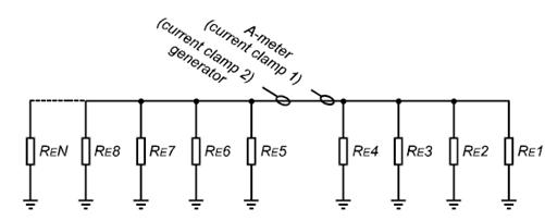 (c)   使用4線2探頭,并結合測試夾鉗測量接地電阻