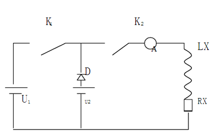 工作時取U1為U2的10倍以上,U2為電橋電源,D的反向電壓應(yīng)大于U1合K1,K2待電流表指示電流達(dá)I=U2/Rx時,斷開K1,這樣便可很快地測量了。